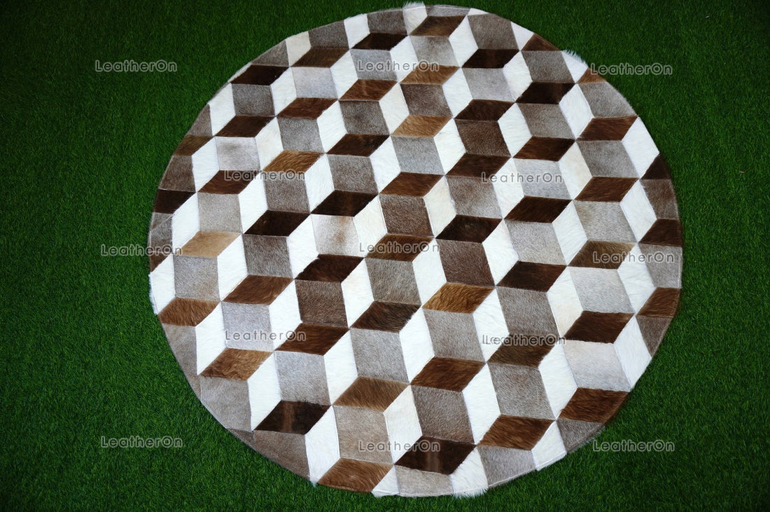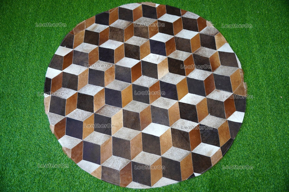 3D HANDMADE 100% Natural COWHIDE RUG (4 X 4 ft.) | 3D Patchwork Cowhide Area Rug | Real Hair on Leather Cowhide Area Rug | PR143