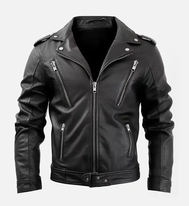 Men’s Black Sheepskin Leather Biker Jacket with Asymmetrical Zipper Built for bold attitude and timeless...