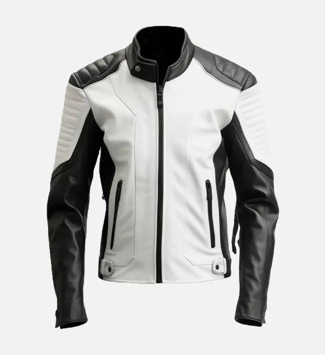 Men’s Sheepskin Leather Jacket – Black & White Contrast Color Blocking Make a bold statement...