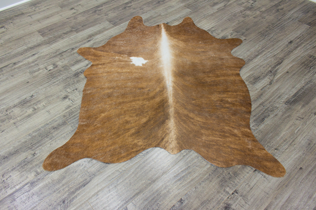 Small ( 5.1 x 4.1 ft ) BRAZILLIAN BRINDLE Cowhide Rug Hair-on Leather Area Rug - Exact as Photo