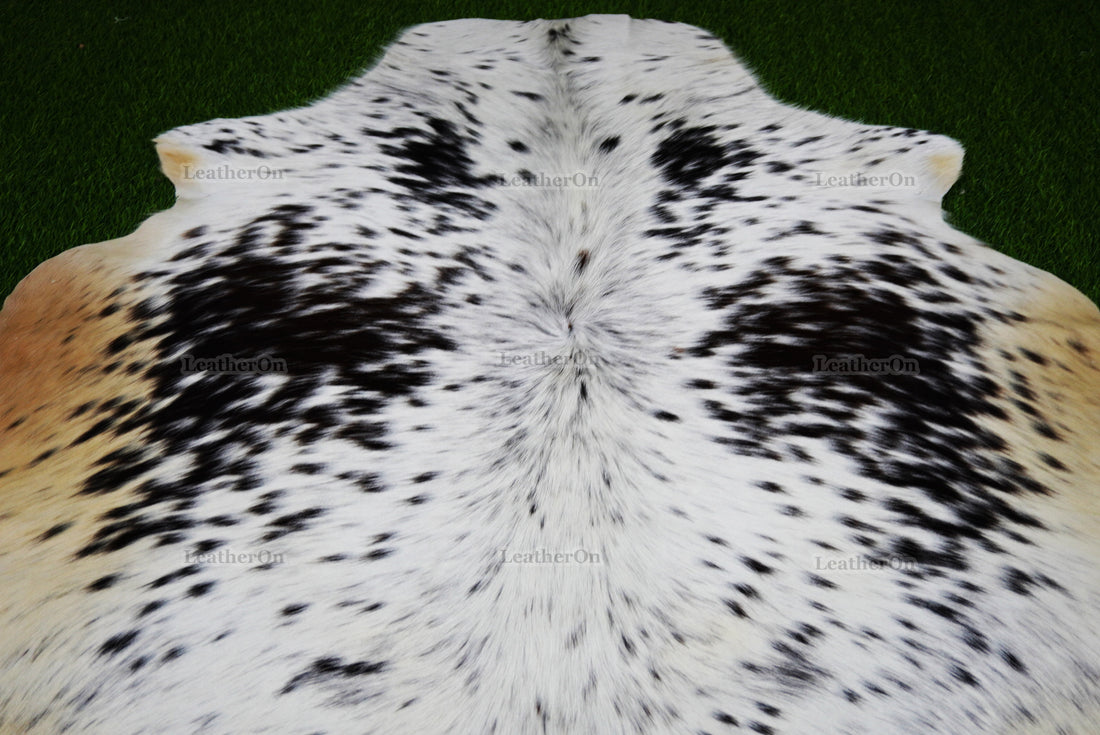 Tricolor Cowhide (4.3 X 3.7 ft.) Exact As Photo Cowhide Rug | 100% Natural Cowhide Area Rug | Real Hair-on Leather Cowhide Rug | C881
