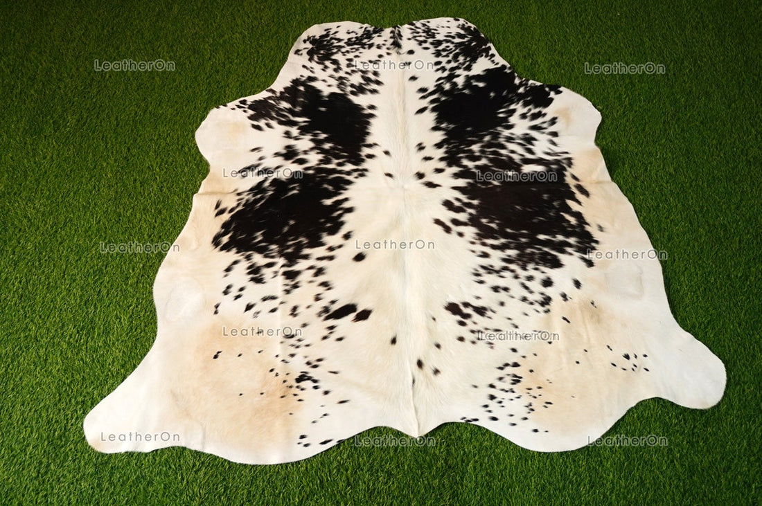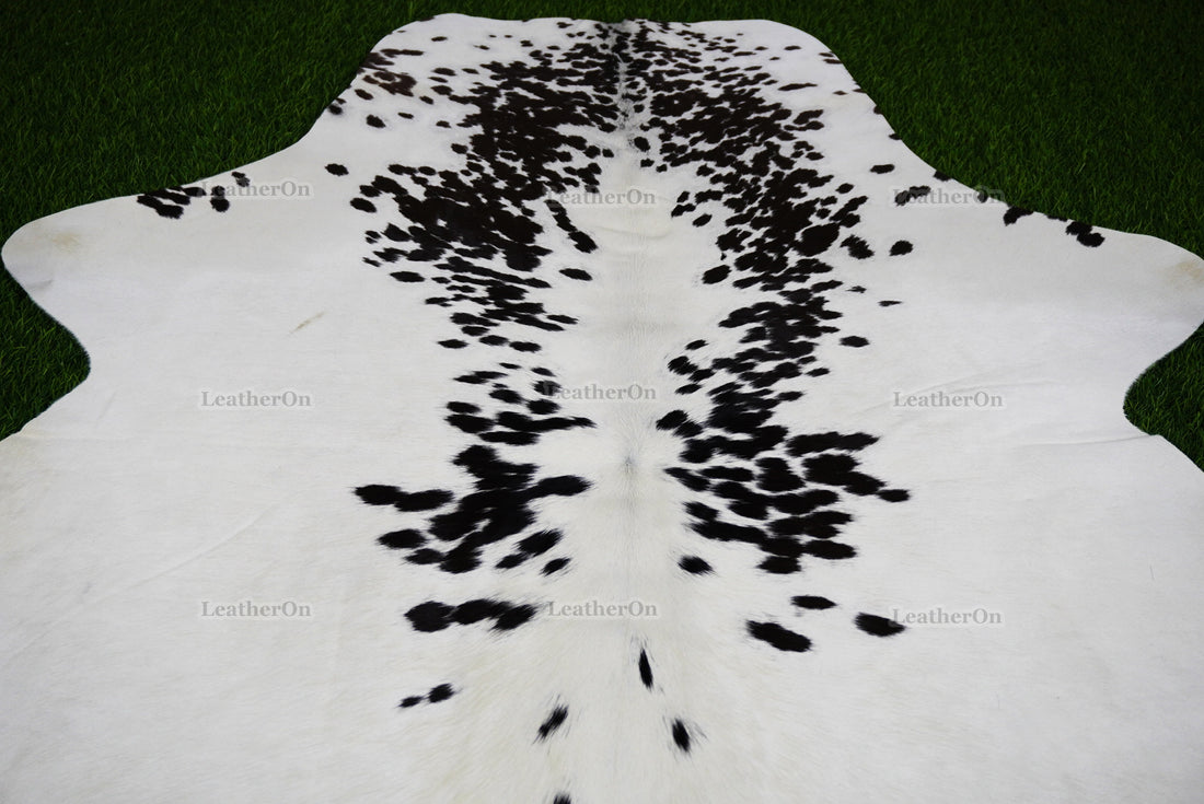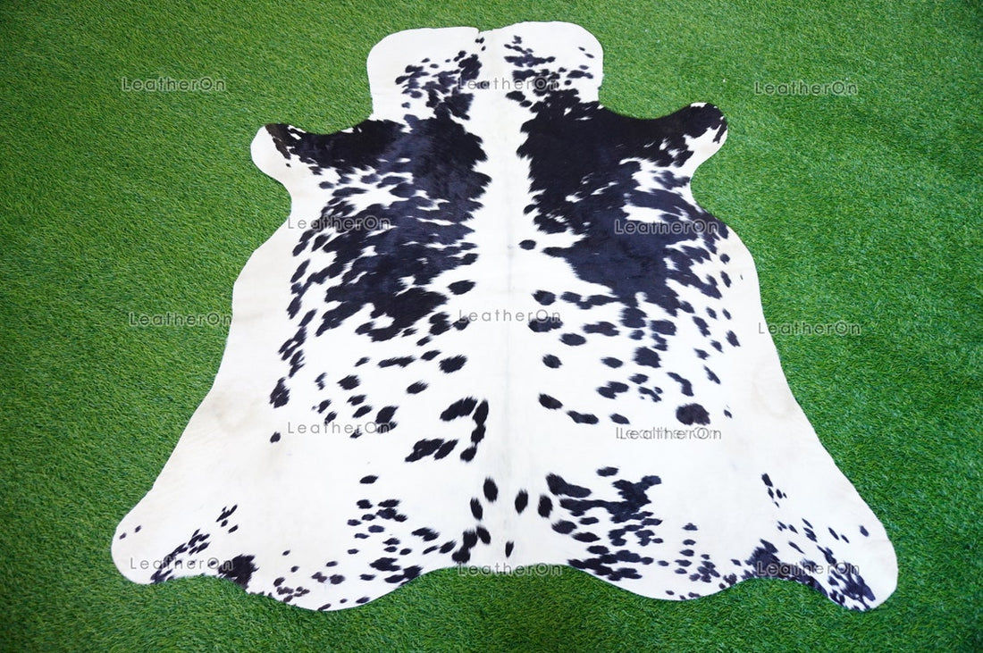 Small (4 X 4.5 ft.) EXACT As Photo, Black White Speckled COWHIDE RUG | 100% Natural Cowhide Area Rug | Real Hair-on Leather Rug | C441
