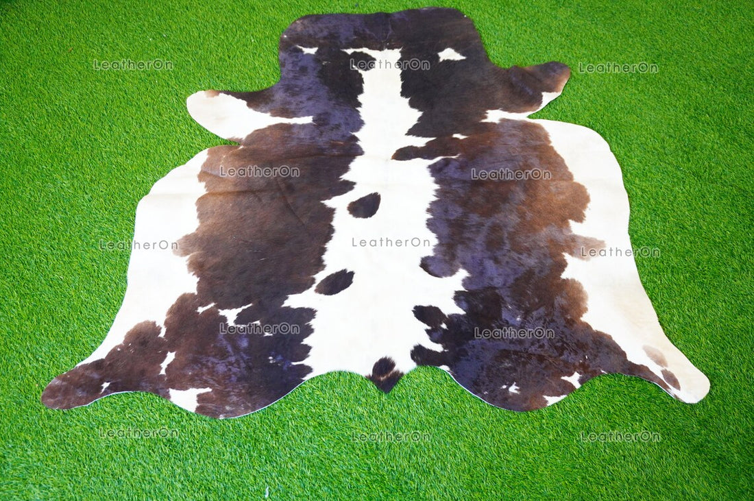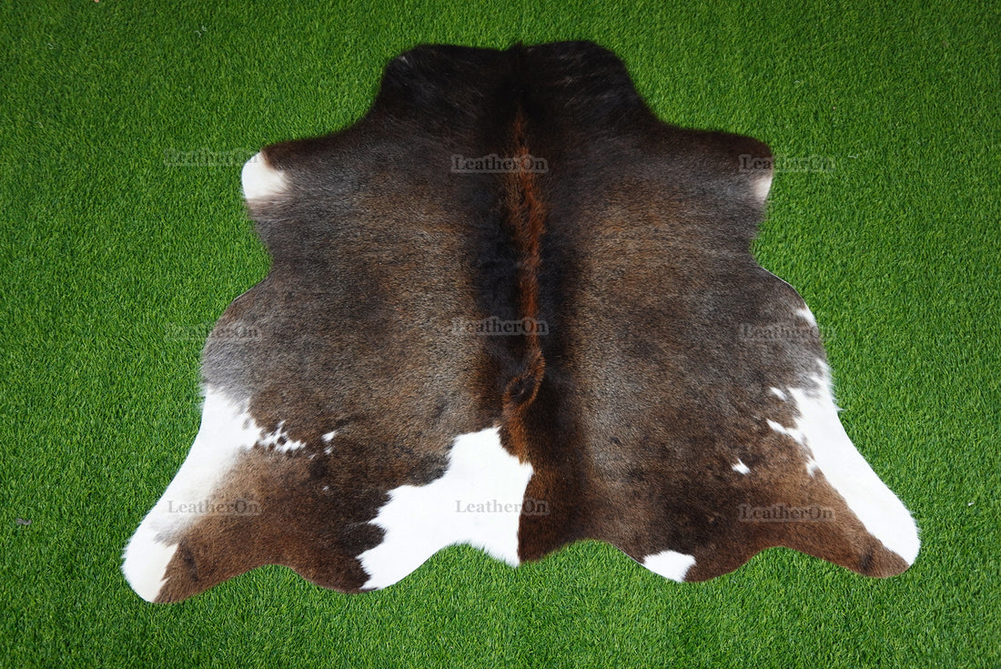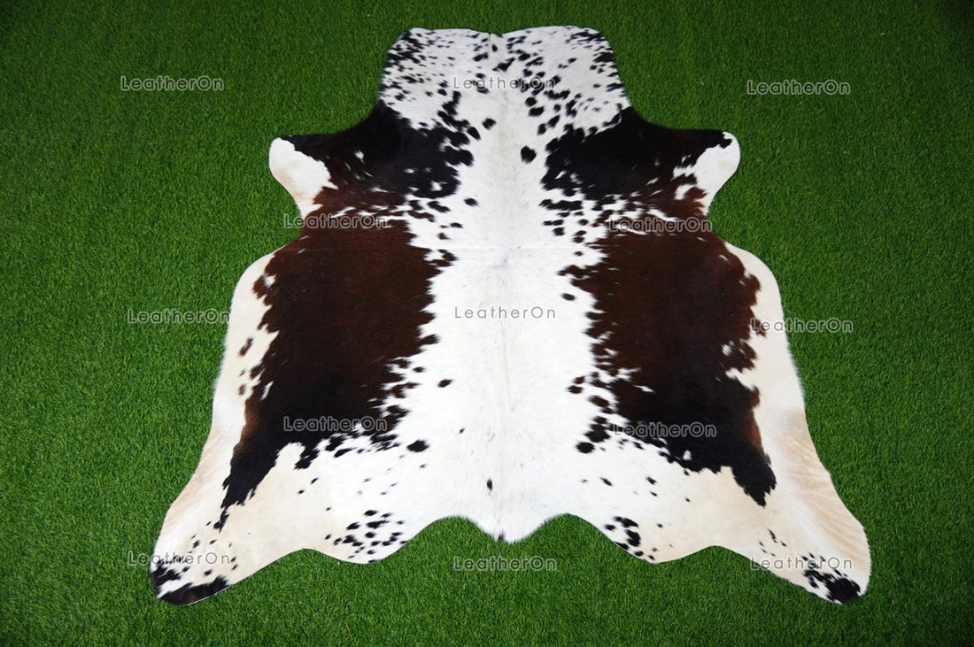 Tricolor Small (4 X 4.7 ft.) Exact As Photo Cowhide Area Rug | 100% Natural Cowhide Rug | Real Hair-on Leather Cowhide Rug | C817