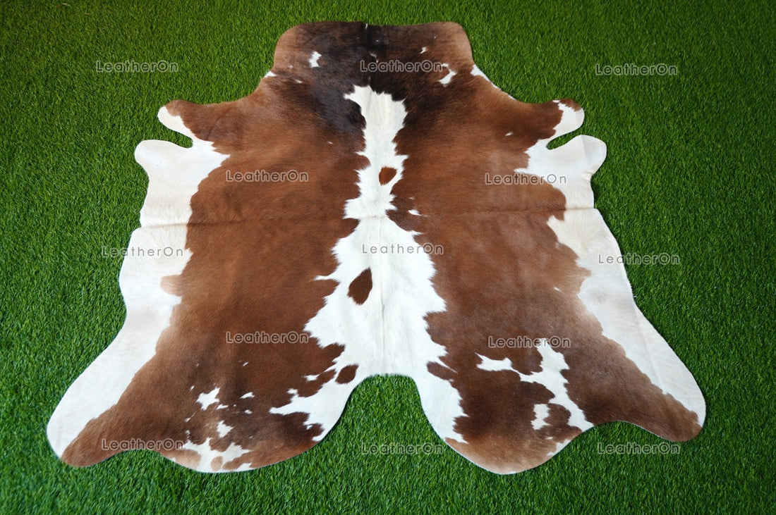 Brown White Small (5 X 4 ft.) Exact As Photo Cowhide Rug | 100% Natural Cowhide Area Rug | Real Hair-on Leather Cowhide Rug | C863