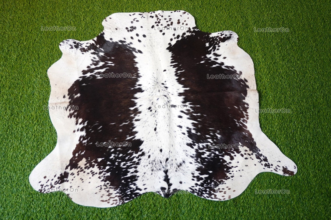 Small (4.3 X 4.6 ft.) EXACT As Photo, Black White COWHIDE Area RUG | 100% Natural Cowhide Rug | Hair-on Leather Cow Hide Rug | C601