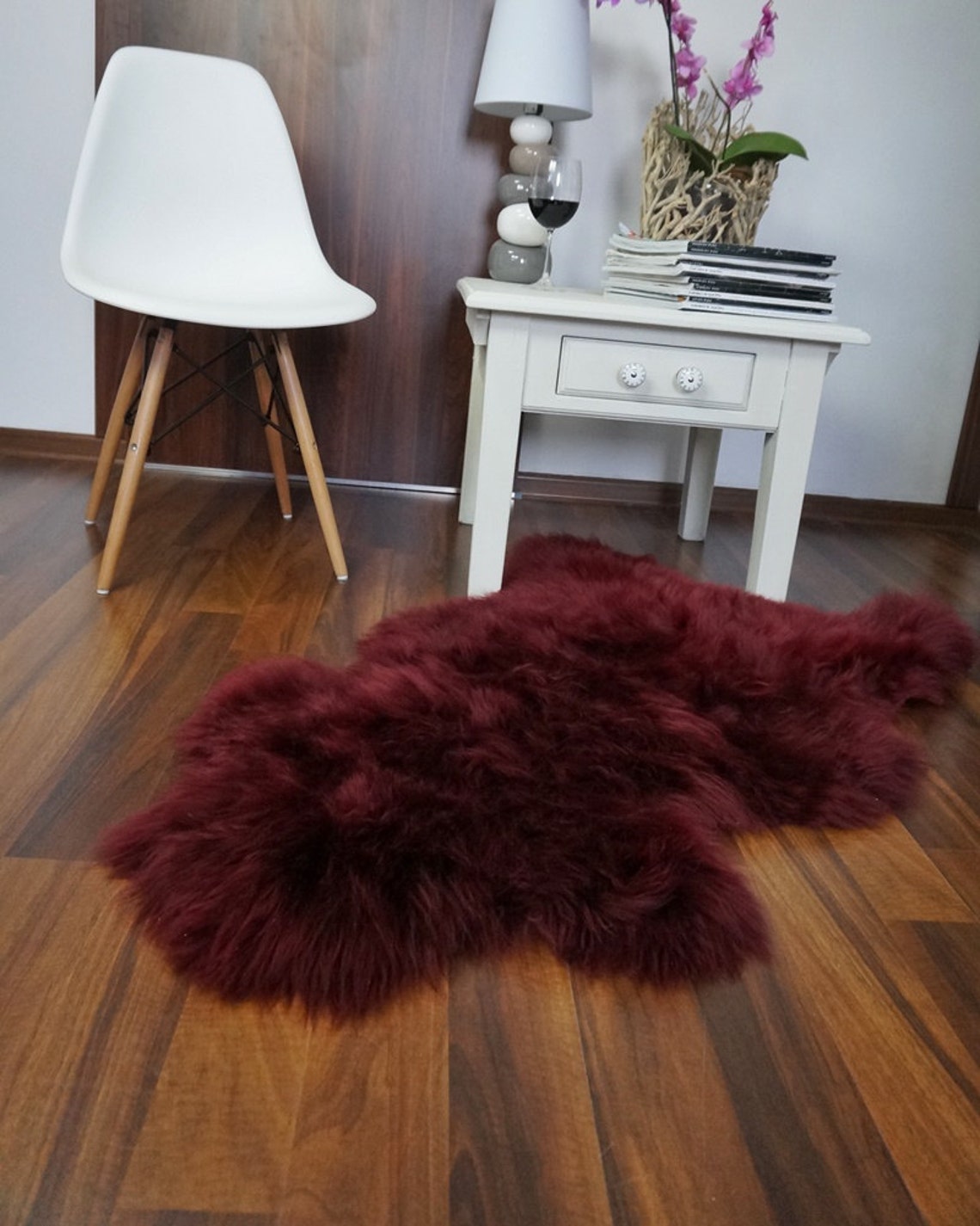 Genuine Australian MAROON/BURGUNDY SHEEPSKIN Rug 100% Natural Real Sheepskin Fur Area Rug (3 x 2 ft. approx.)