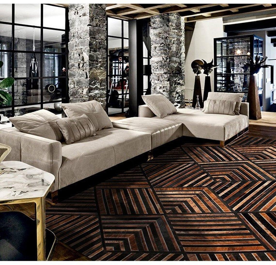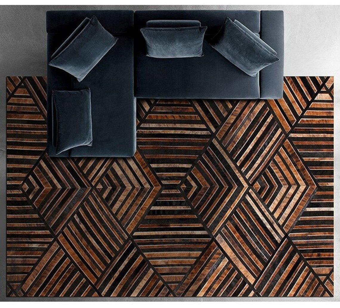 Expertly handcrafted from the premium Cowhides, these Cowhide Rugs are skillfully sewn together. These patchwork rugs present an eye-catching geometric version of the traditional cowhide. Each cowhide area rug is made up of a combination of spectacular color tones, making it ideal for any room.