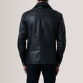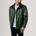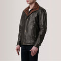 Men’s Semi-Aniline Sheepskin Leather Jacket with Leather-Lined Shirt Collar
