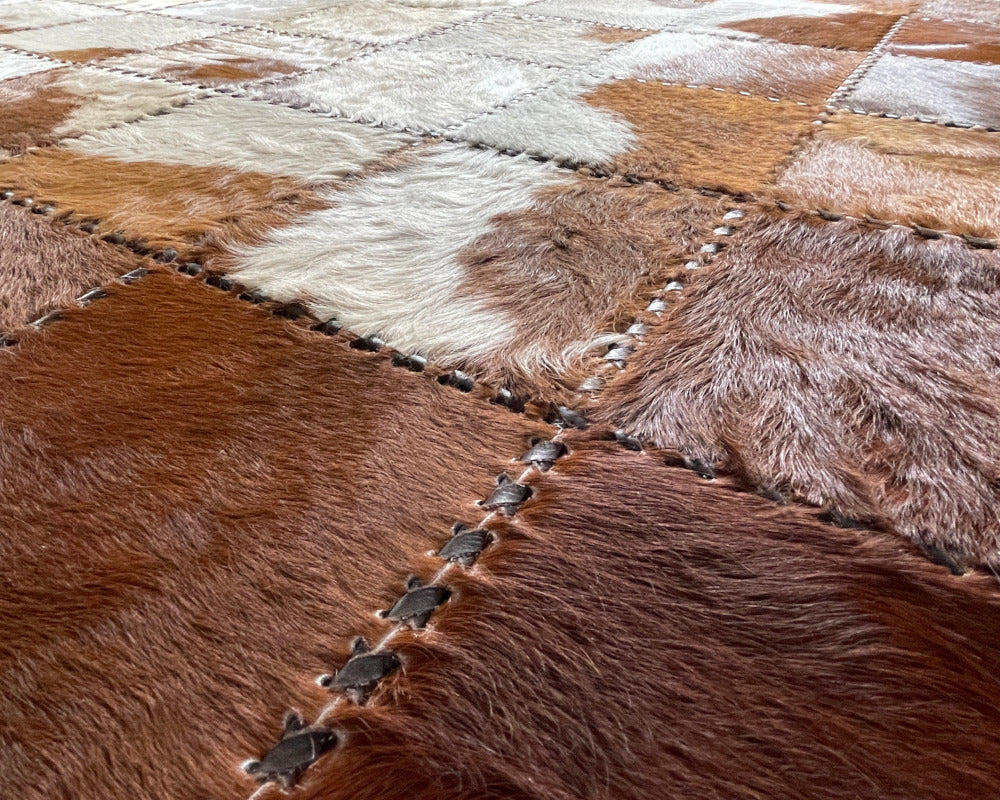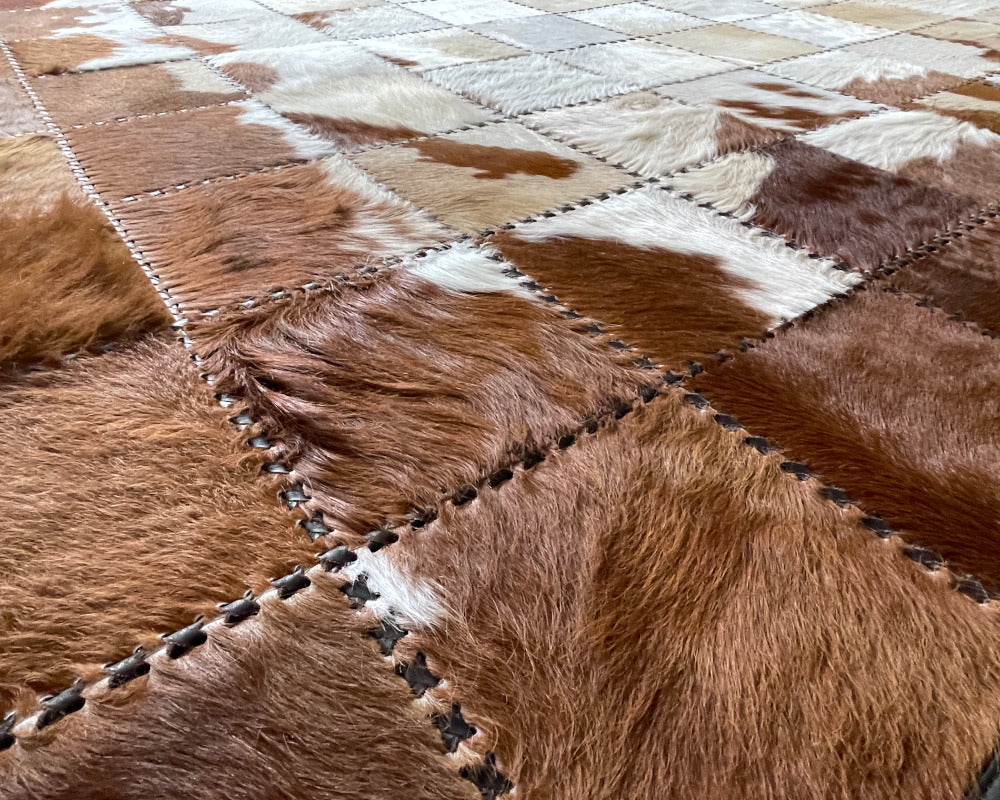 Patchwork Cowhide Area Rug, Handwoven 100% Natural Cow Skin RUG | Hallway Runner | Hair on Leather Cowhide Carpet | 505