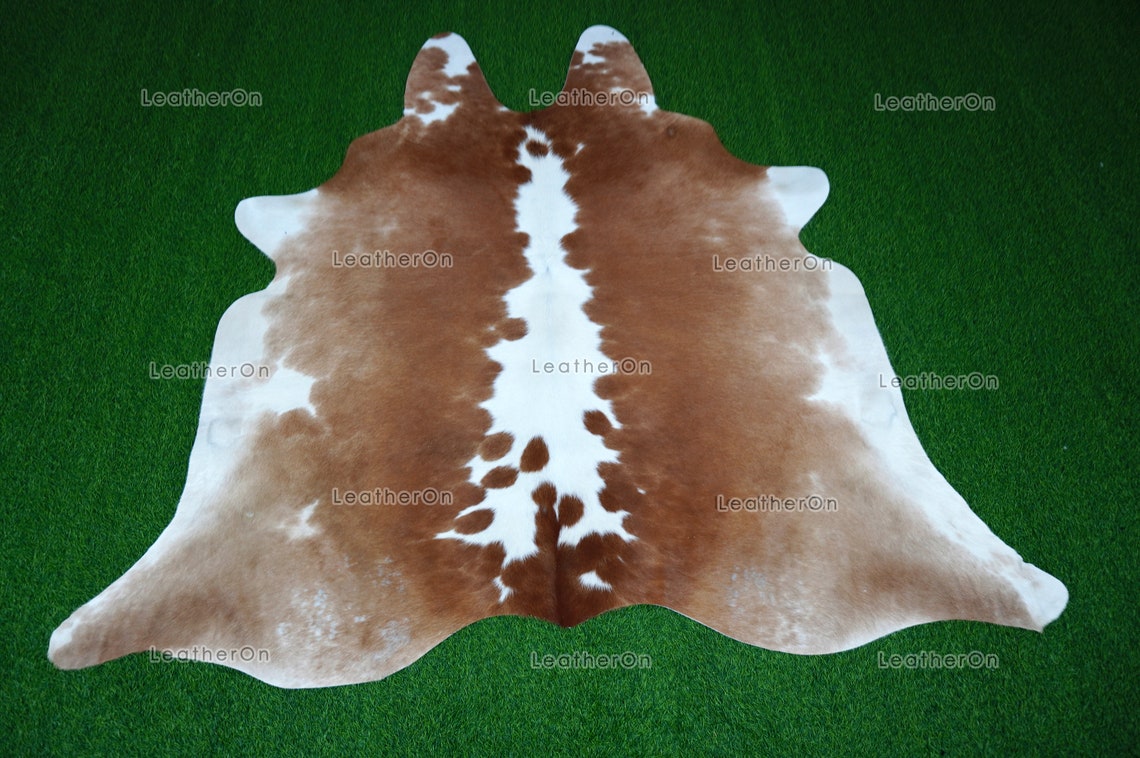 Brown White Large (5.5 X 5.8 ft.) Exact As Photo Cowhide Area RUG | 100% Natural Cowhide Rug | Genuine Hair-on Cowhide Leather Rug | C735