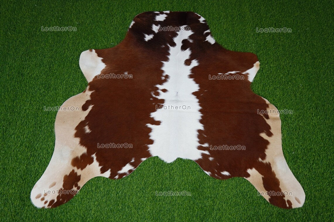 Brown White Small (3.5 X 4 ft.) Exact As Photo Cowhide Rug | 100% Natural Cowhide Area Rug | Real Hair-on Leather Cowhide Rug | C854