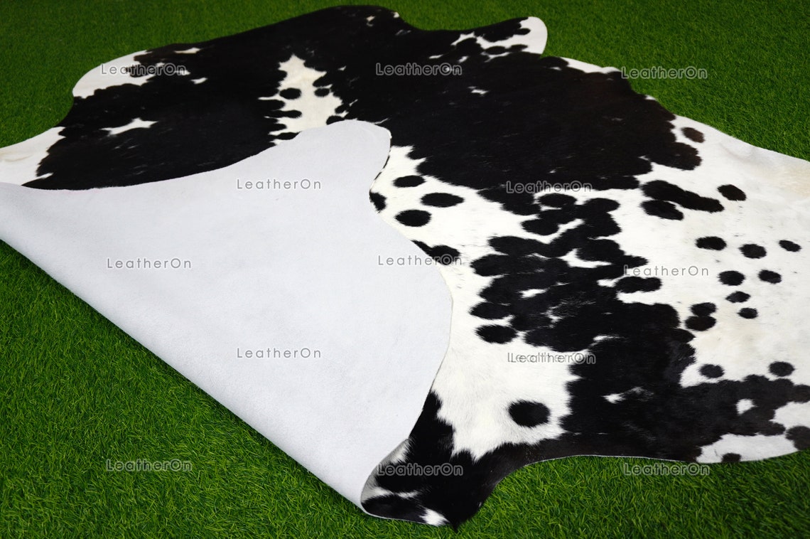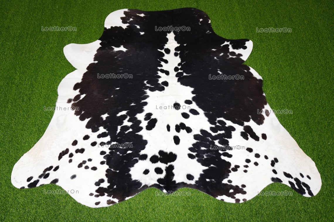 Black White Large (5 X 5.9 ft.) Exact As Photo Cowhide Area RUG | 100% Natural Cowhide Rug | Genuine Hair-on Cowhide Leather Rug | C704