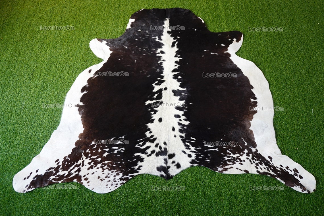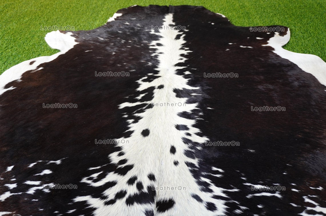 Large (5 x 5.8 ft.) EXACT As Photo, Black White COWHIDE Area RUG | 100% Natural Cowhide Rug | Hair-on Cowhide Leather Rug | C558