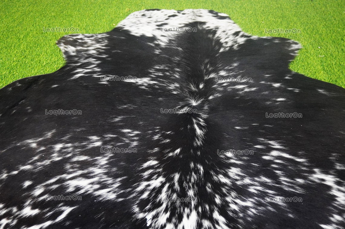 Black White Medium (5 X 5 ft.) Exact As Photo Cowhide RUG | 100% Natural Cowhide Area Rug | Genuine Hair-on Cowhide Leather Rug | C809