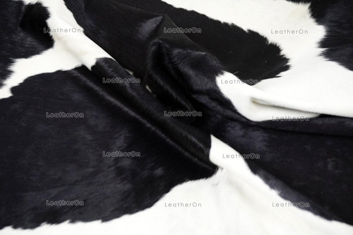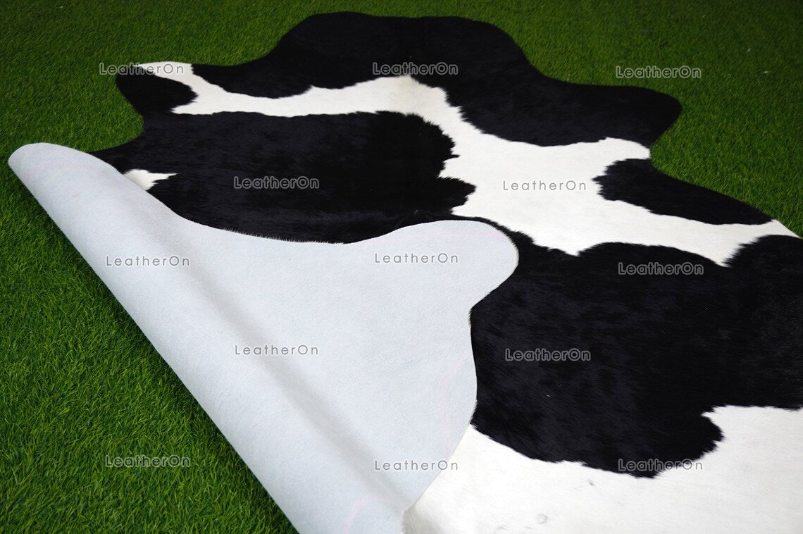 Black White Large (5 X 5.6 ft.) Exact As Photo Cowhide Area RUG | 100% Natural Cowhide Rug | Genuine Hair-on Cowhide Leather Rug | C850