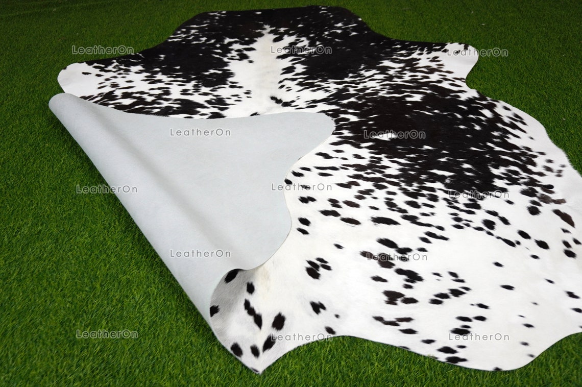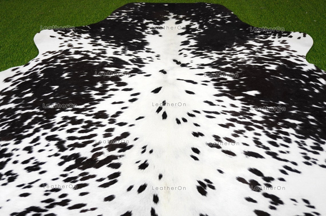 Black White XLARGE (5.7 X 6 ft.) Exact As Photo Cowhide Rug | 100% Natural Cowhide Area Rug | Real Hair-on Leather Cowhide Rug | C839