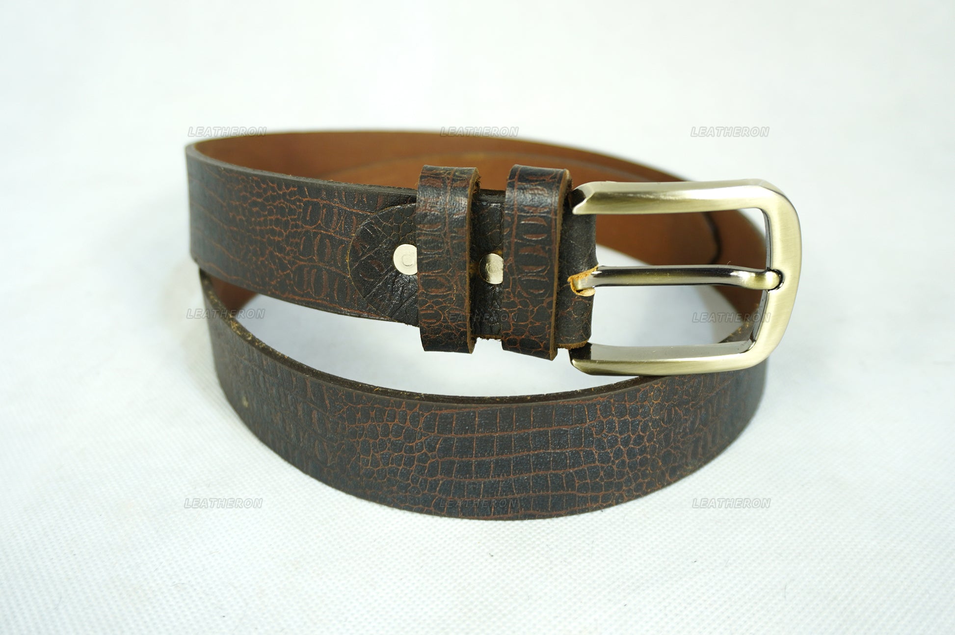 Embossed Crocodile Pattern Leather Belt - Handmade, Durable, Stylish