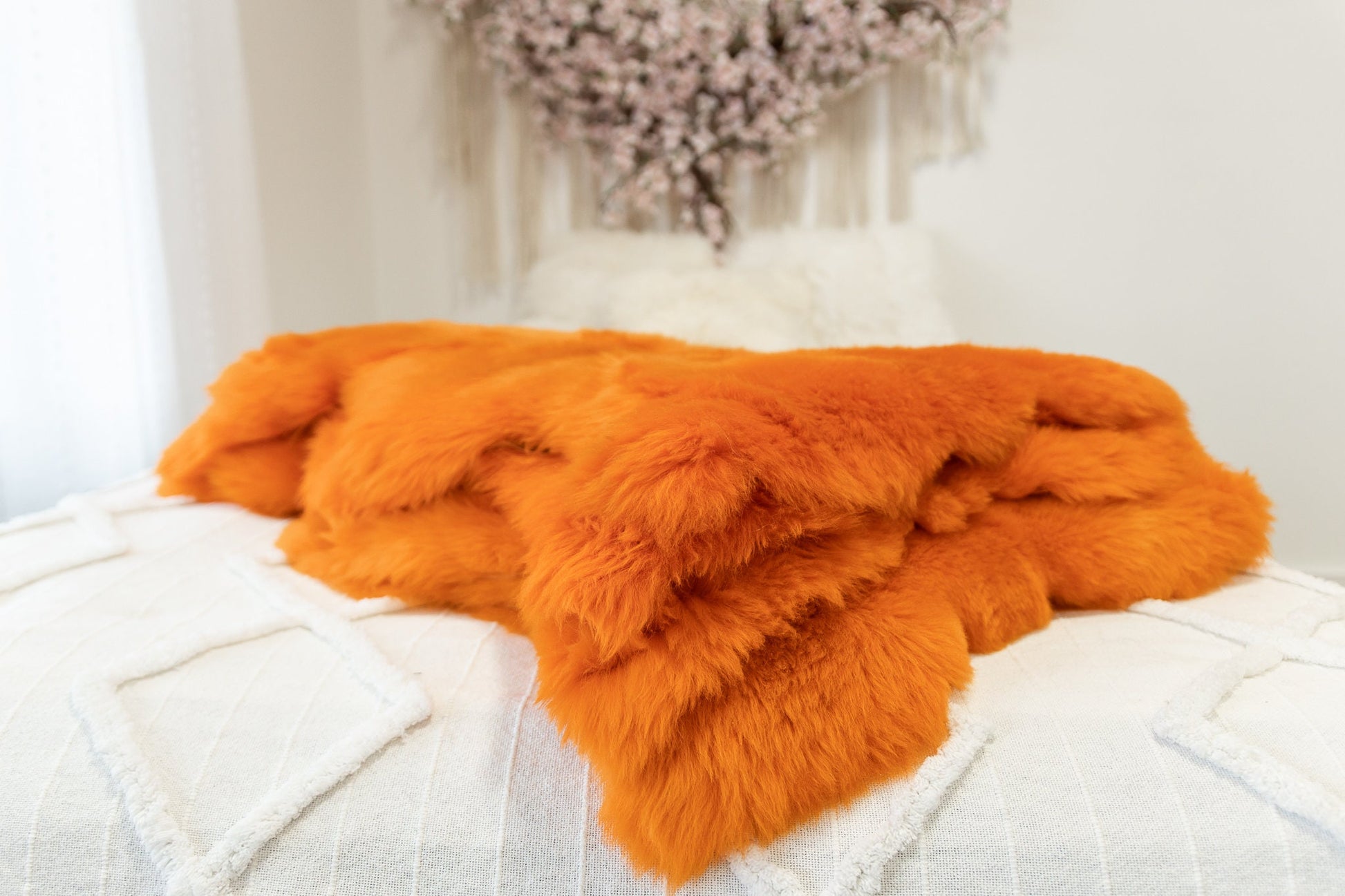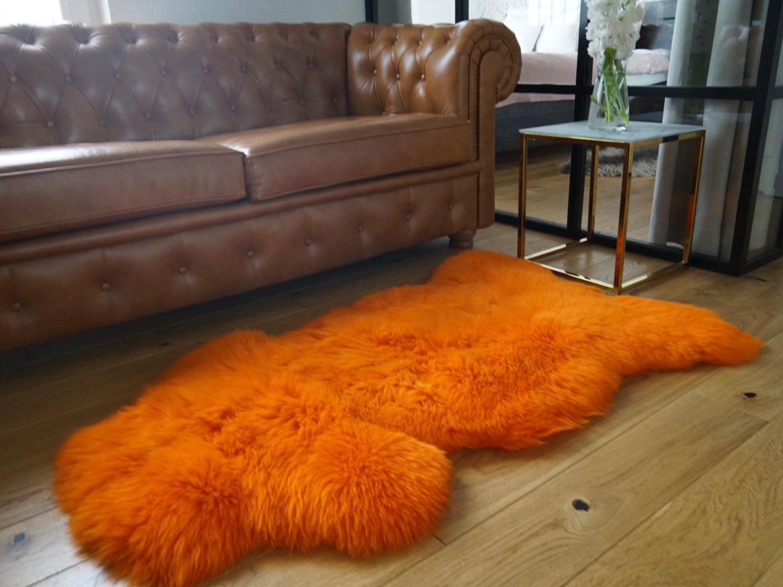 Genuine Australian Orange SHEEPSKIN Rug ( 3 x 2 ft. approx. ) 100% Natural Real Sheepskin Fur Area Rug