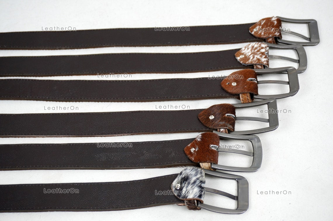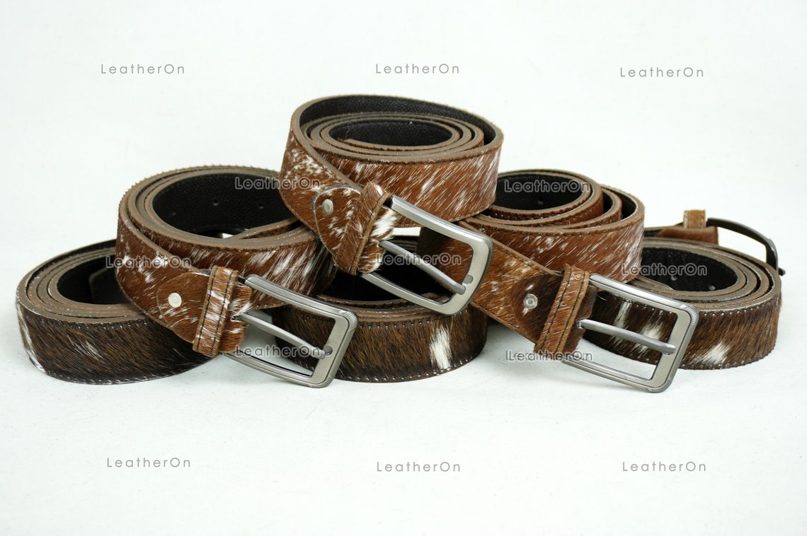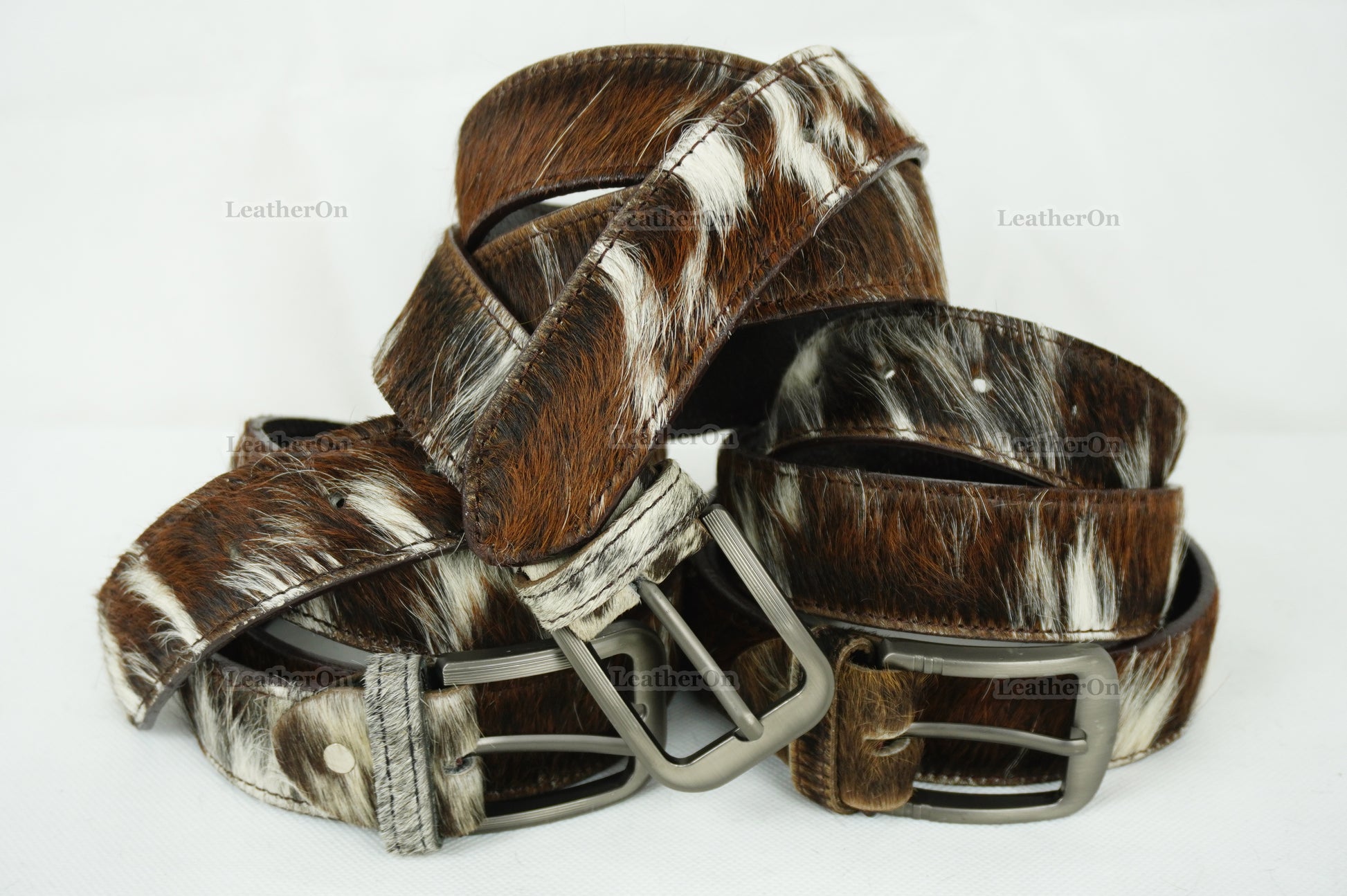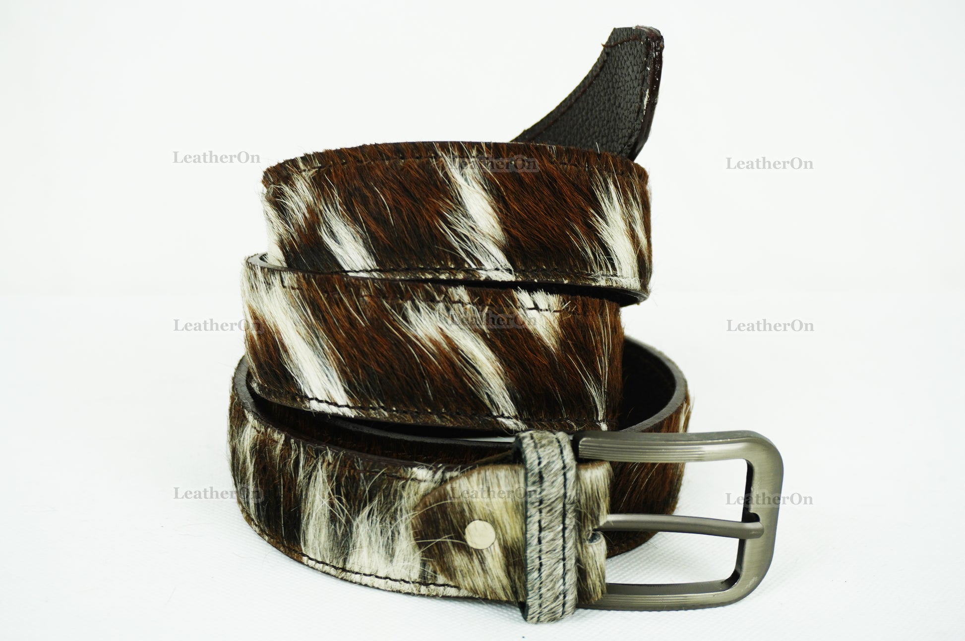Genuine COWHIDE BELTS with Full Grain Leather Backside | Unisex 100% Natural Cow hide Belts | REAL Hair on Leather Belts | BLT12
