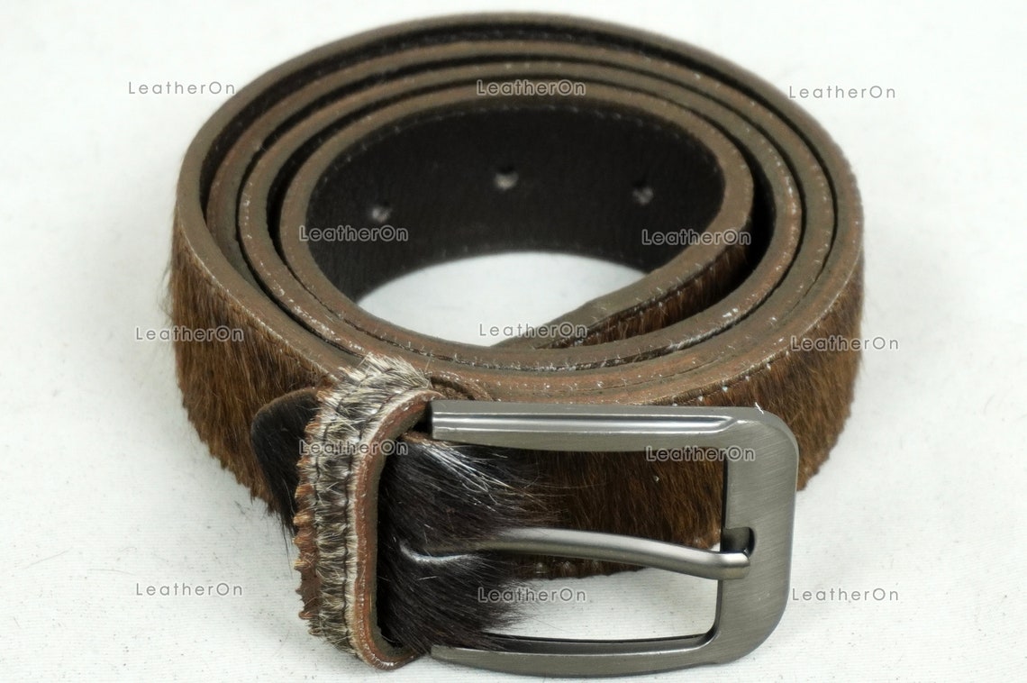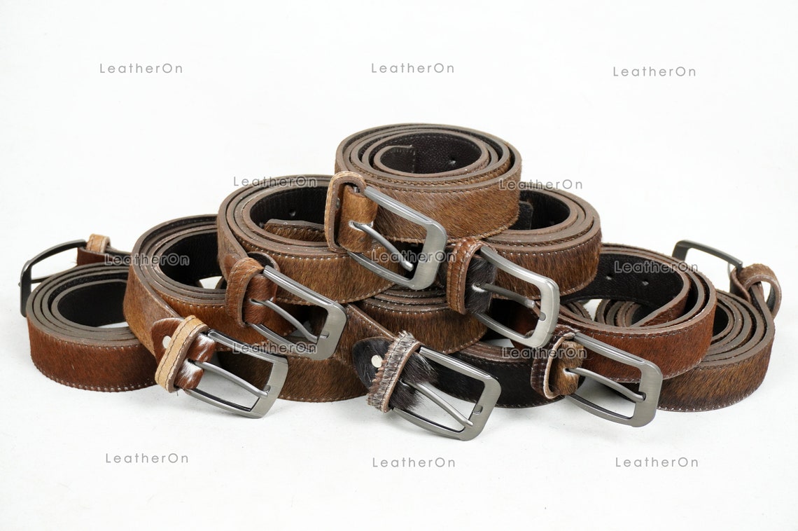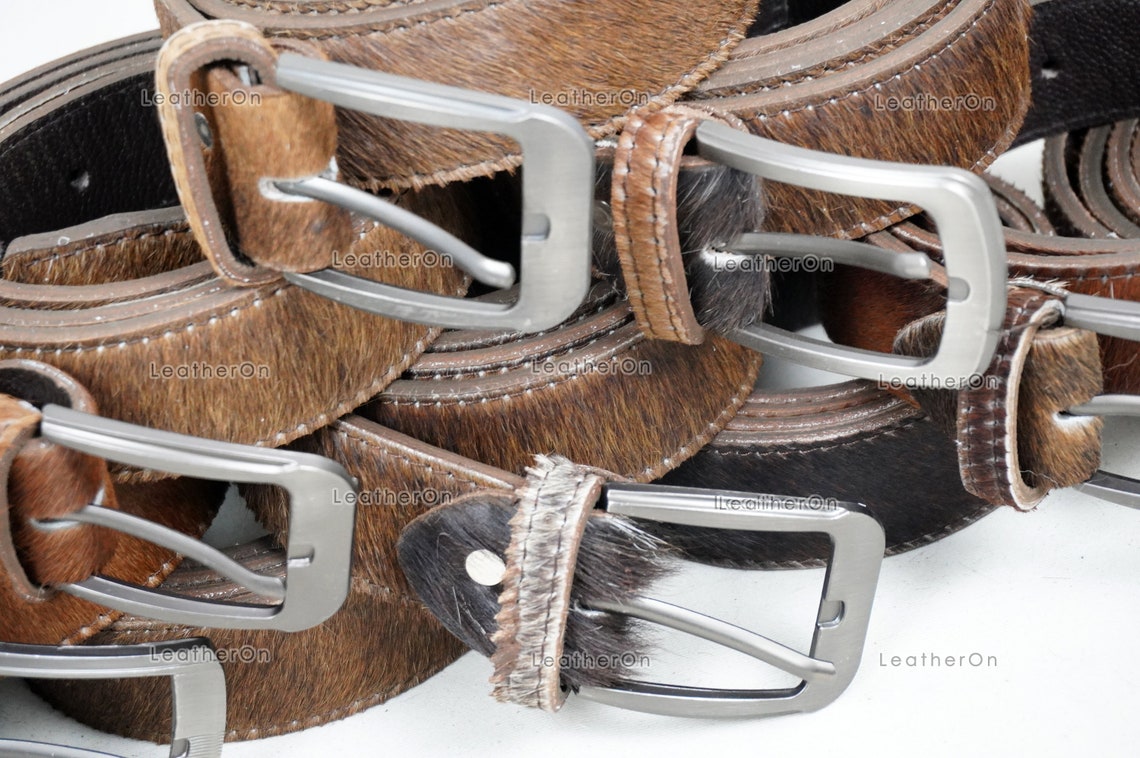 Genuine COWHIDE BELTS with Full Grain Leather Backside | Unisex 100% Natural Cow hide Belts | REAL Hair on Leather Belts | BLT15