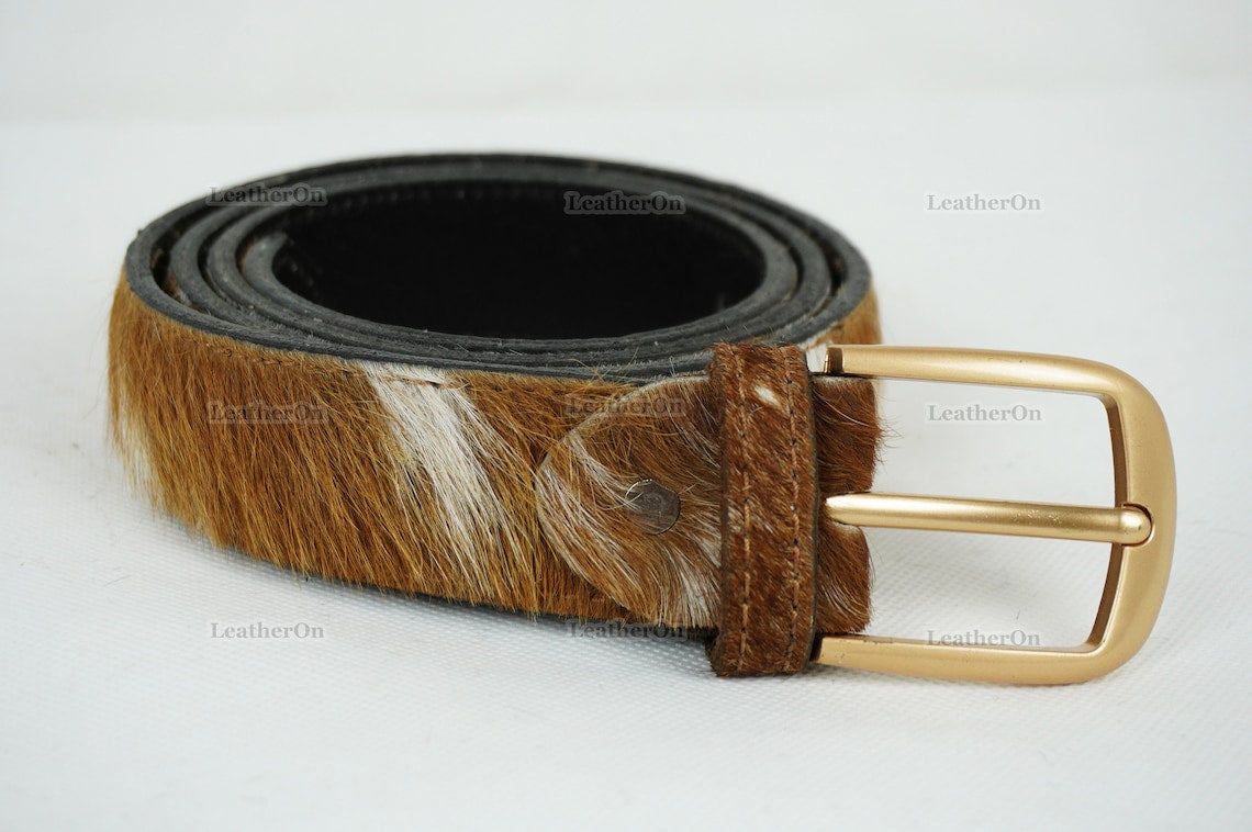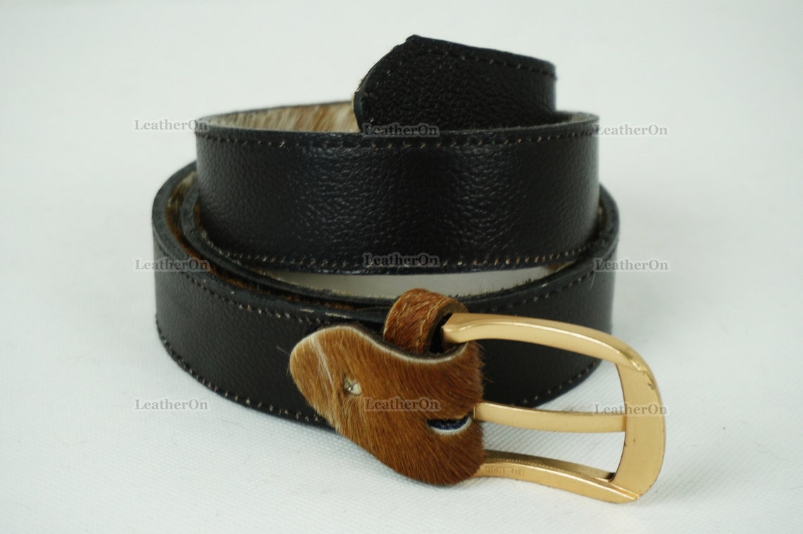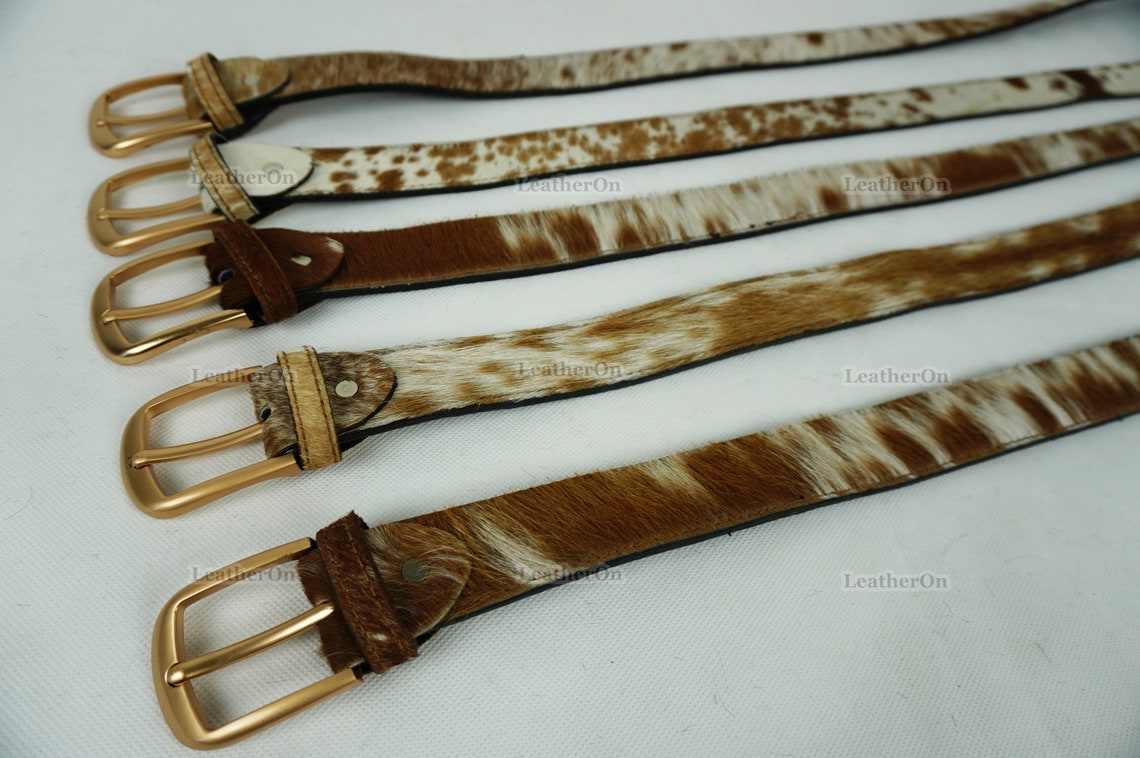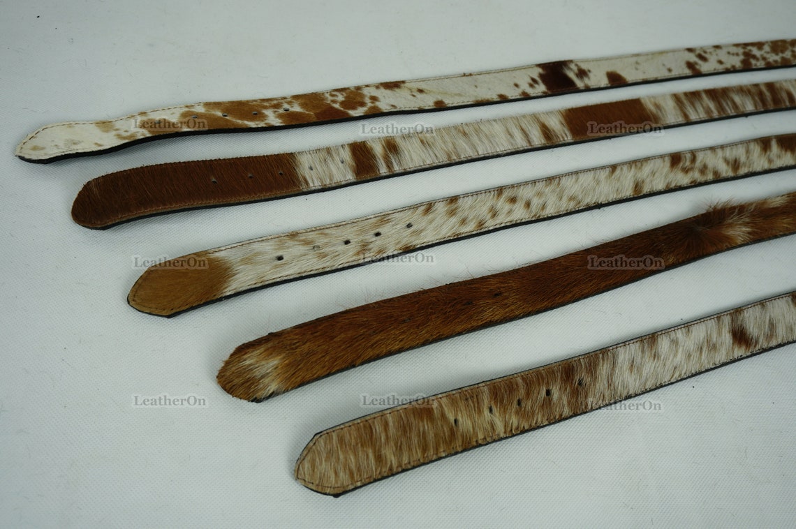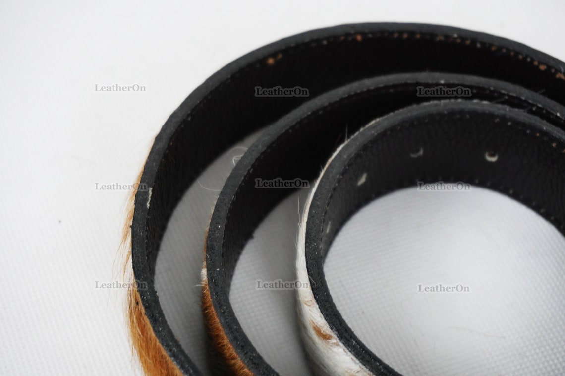 Genuine COWHIDE BELTS with Full Grain Leather Backside | Unisex 100% Natural Cow hide Belts | REAL Hair on Leather Belts | BLT16