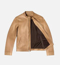 Genuine Sheepskin Leather Biker Jacket – Brown & Tan Brown with Streamlined Pattern Detailing