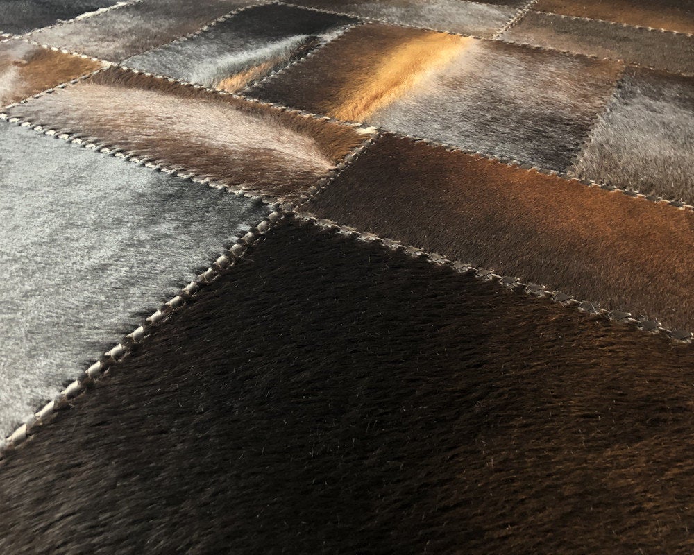 Expertly handcrafted from the premium Cowhides, these Cowhide Rugs are skillfully sewn together. These patchwork rugs present an eye-catching geometric version of the traditional cowhide. Each cowhide area rug is made up of a combination of spectacular color tones, making it ideal for any room.