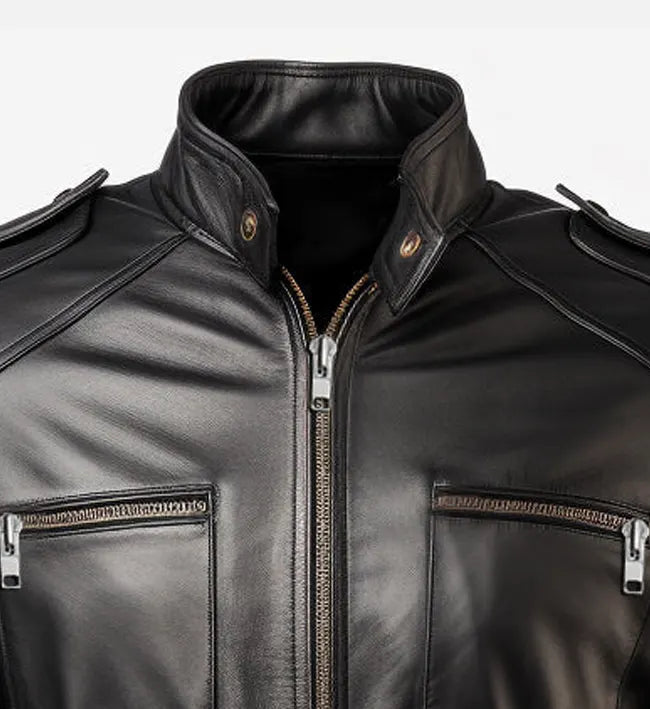 Designed for a sharp, modern look, this men’s leather jacket is crafted from 100% genuine sheepskin leather, offering a smooth texture, flexibility, and long-lasting durability. The sleek, streamlined silhouette is enhanced with structured details, while the soft polyester lining ensures comfortable wear throughout the day. Finished in classic black, this jacket is a versatile statement piece for everyday and smart-casual styling.