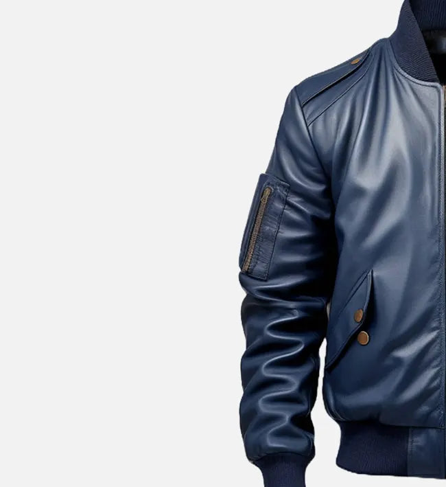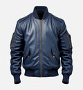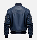 Men’s Blue Genuine Sheepskin Leather Bomber Jacket