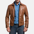 Men’s Brown Sheepskin Leather Jacket with Shirt Collar