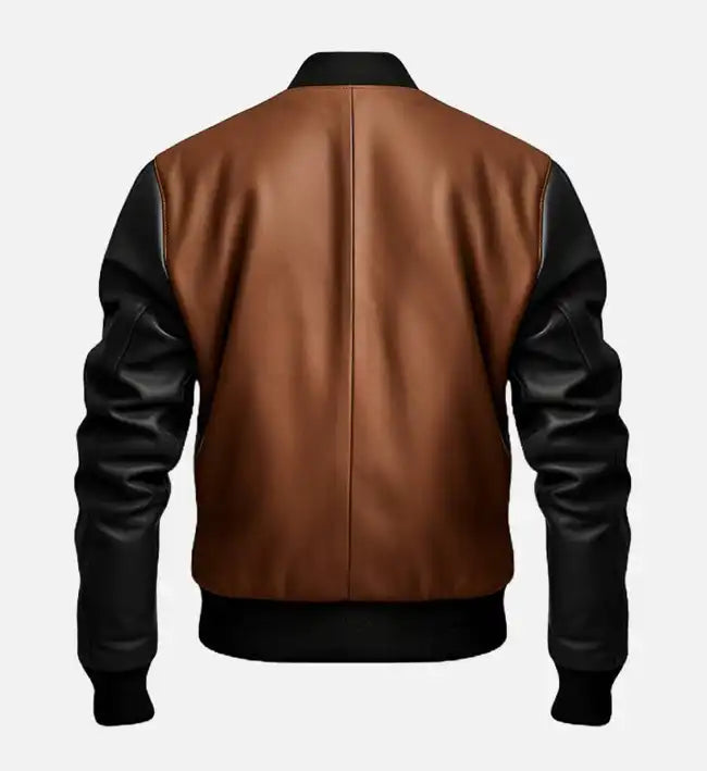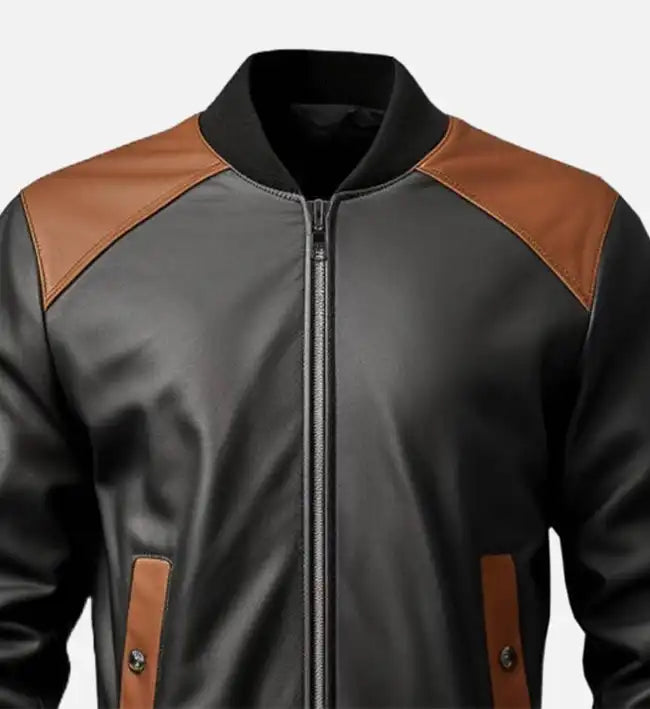 Crafted for modern men who appreciate bold design with everyday comfort, this leather jacket features a striking color-blocked look combining black and brown leather panels. Made from 100% genuine sheepskin leather, it delivers a soft yet durable feel with a naturally refined appearance. The smooth polyester lining ensures comfortable wear, while ribbed knit details and a premium YKK zipper complete a stylish, functional jacket designed for casual and smart-casual outfits.