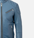 Finished in a striking Blue, offering a distinctive alternative to classic leather jacket shades.