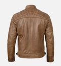 Men’s Sheepskin Café Racer Camel Brown Leather Jacket