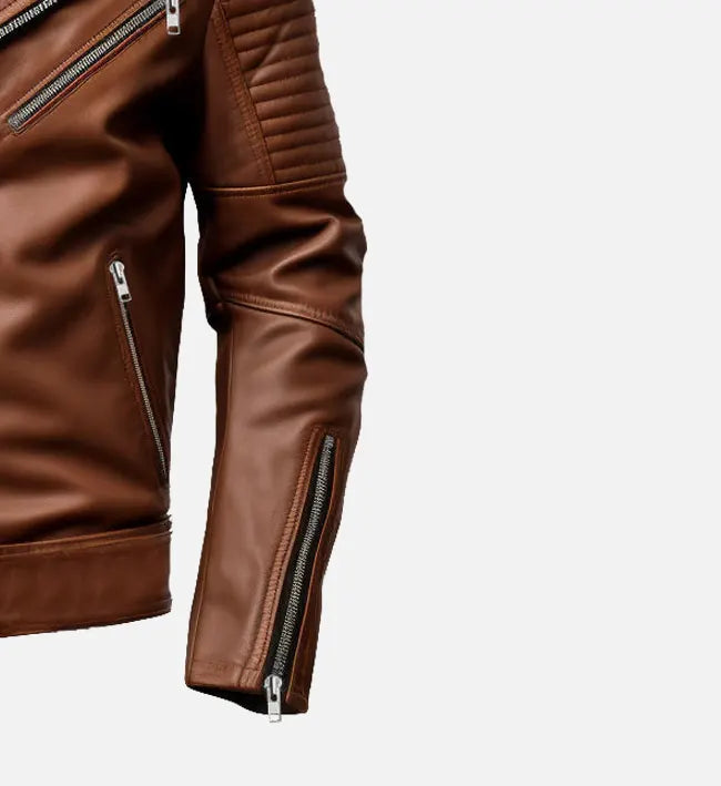 Men’s Sheepskin Leather Biker Jacket with Asymmetrical Zipper