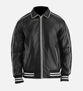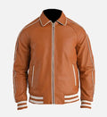 Men’s Sheepskin Leather Bomber Jacket – Shirt Collar with Ribbed Finish
