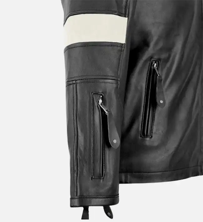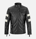 Perfect for casual outings, city streets, or evening events, this black-and-white leather jacket combines premium craftsmanship with modern, sporty detailing—an essential addition to any man’s wardrobe.