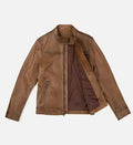 Men's Sheepskin Vintage Brown & Walnut Brown Leather Biker Jacket