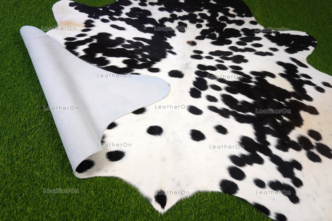 Black White Medium (5 X 5.5 ft.) Exact As Photo Cowhide RUG | 100% Natural Cowhide Area Rug | Genuine Hair-on Cowhide Leather Rug | C822