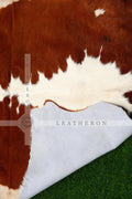 EXACT As Photo (4.3 X 4.4 ft.), Unique Brown White COWHIDE RUG | 100% Natural Cowhide Area Rug | Real Hair-on Leather Cow Hide Rug | C437