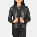 Women’s Black Sheepskin Leather Jacket with Band Collar