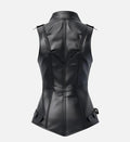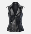 Perfect for layering over tops, dresses, or casual outfits, this black leather vest blends premium craftsmanship with modern, structured design—an essential piece for women seeking versatile and chic outerwear.