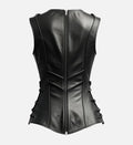 Women’s Black Sheepskin Leather Vest with Lace-Up Sides & V-Shaped Back Seam