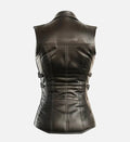 Perfect for layering over tops, blouses, or dresses, this black leather vest blends premium craftsmanship with contemporary style—an essential piece for women who love edgy yet sophisticated outerwear.