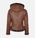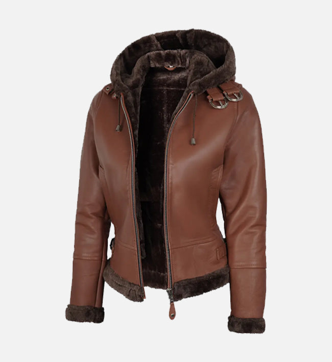 Women’s Brown Sheepskin Shearling Leather Jacket with Hood