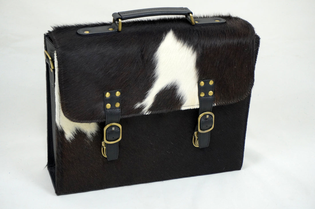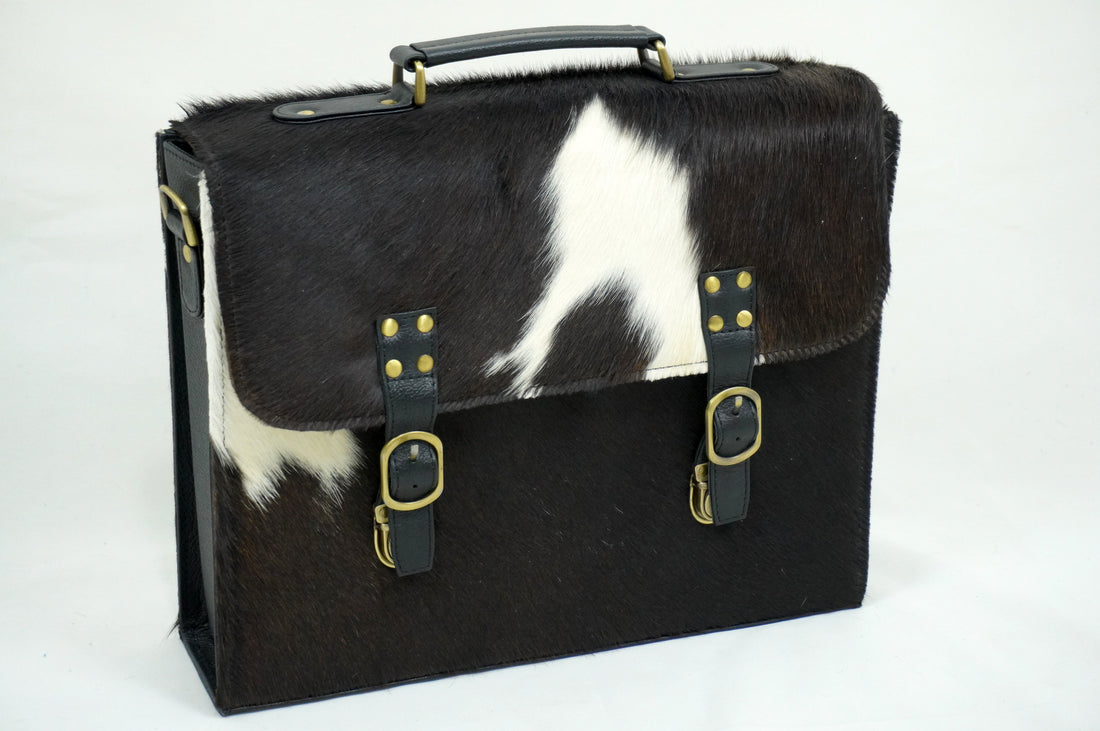 Cowhide Leather Office Bag Real Hair on Cowhide Leather File Bag Natural Cow Skin Laptop Bag | OB01