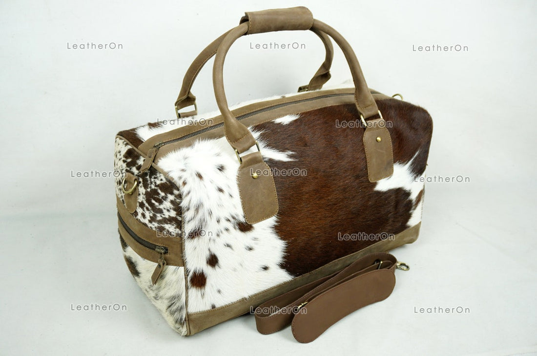 Cowhide Duffel Bag | Natural Cow Skin Duffel Bag | Hair-On-Leather Travel Bag | Cowhide Luggage Bag | Handmade Duffel Bag | DB111