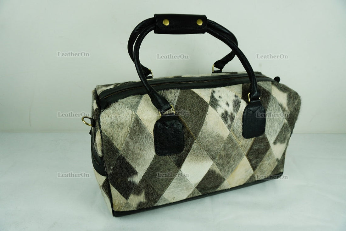 Cowhide Patchwork Duffel Bag | Natural Cowhide Duffel Bag | Hair-On-Leather Travel Bag | Cowhide Luggage Bag | Handmade Duffel Bag | DB92