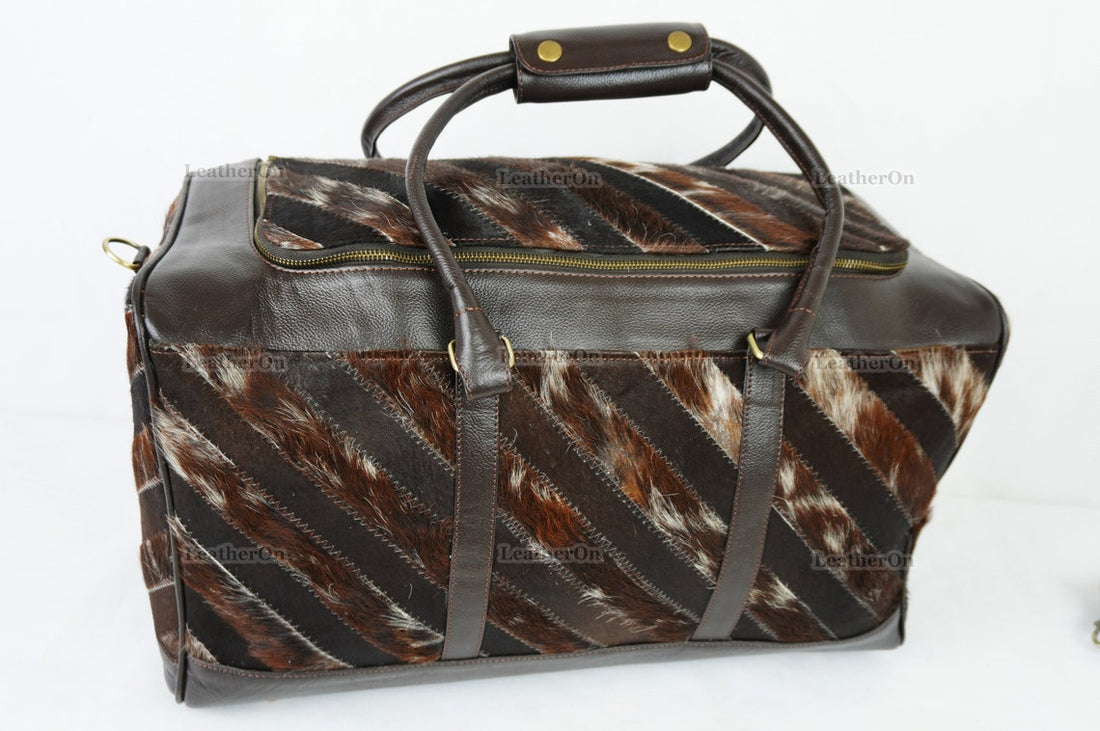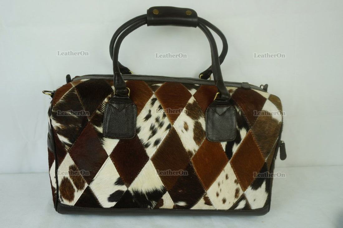 Large Duffel Bag!! Cowhide Patchwork Duffel Bag | Hair-On-Leather Travel Bag | Cow Skin Luggage Bag | Handmade Cowhide Duffel Bag | DB102