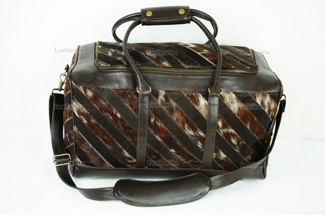 Natural Cowhide Duffel Bag Hair On Leather TRAVEL Bag Real Cowhide Luggage Bag Original Cow Skin Duffel Bag | DB62