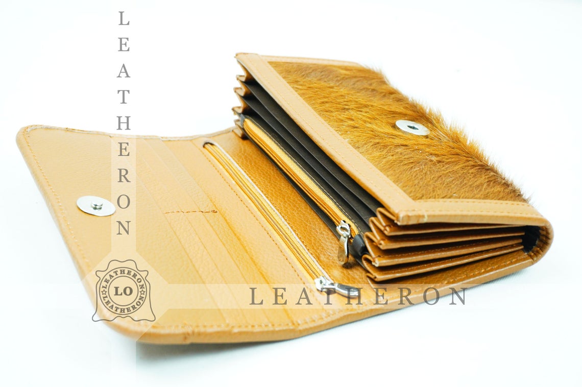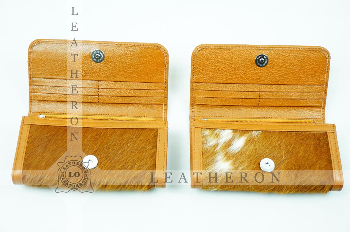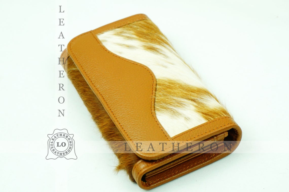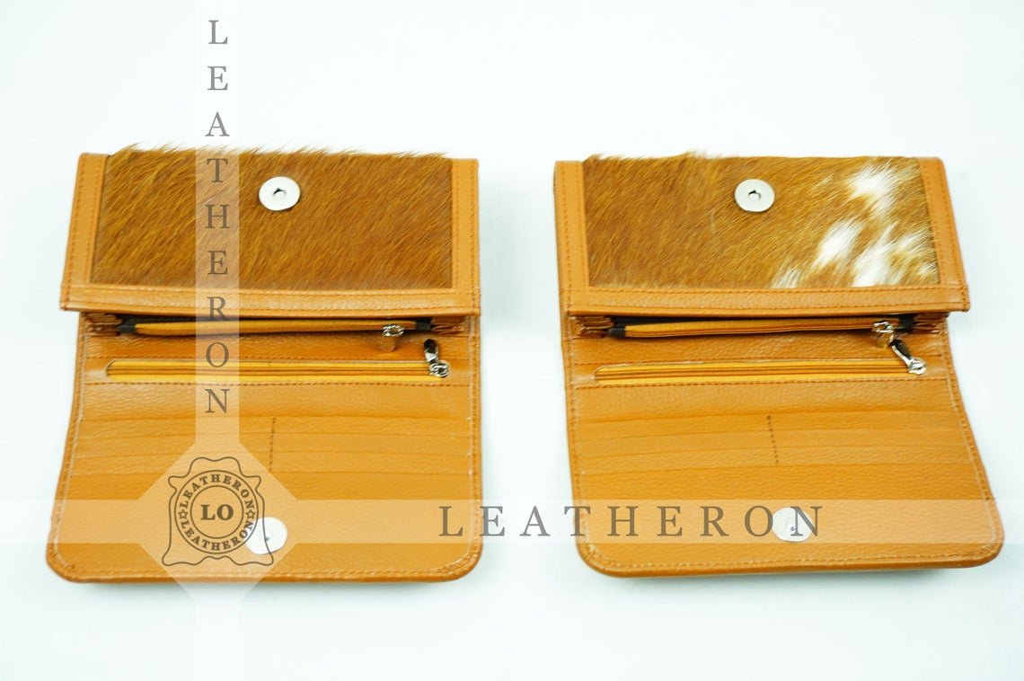 100% Natural Cowhide Clutch Wallet | Real Hair on Leather Clutch Purse | Genuine Cow Skin Leather Clutch Pouch
